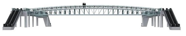 此外,在上海还有一个具有特殊意义的标志性工程——矗立在上海滩最繁华的徐家汇地区的徐家汇全铝高架桥。它是国内一座完全自主设计、自行生产、自行建造的铝合金结构桥梁,也是目前国内的三座铝合金桥梁之一。于2007年9月在徐家汇漕溪北路投入运行(见图4)。该桥外形类似外滩“白渡桥”,连接徐家汇第六百货以及太平洋百货,主材为6061-T6铝合金,全部由伟德国际1946bv官网提供,单跨23m,宽度6m,主桥高2.6m,桥净高4.6m。由于徐家汇地区地下有地铁通过,为了确保地铁运行的安全,铝合金天桥自重仅15吨,最大载重量可以达到50吨,远低于“地铁上建设天桥不得超过70吨”的标准,有效地缓解了该路段人行通道拥挤的状况,并为徐家汇的各大商场带来了更多商机。