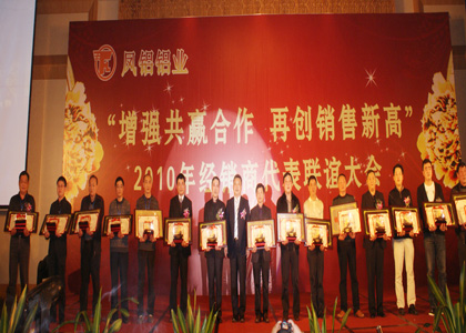 本报讯 记者陈曦岚报道:3月7日,正值阳春三月,伟德国际1946bv官网铝业召开了以“增强共赢合作,再创销售新高”为主题的全国经销商代表联谊大会。这天,公司内彩旗飘舞,人流如潮,来自全国各地的300余名经销商代表脸上洋溢着喜悦的笑容,齐聚一堂,准备共享这年度盛典,共绘伟德国际1946bv官网铝业2010年新蓝图。