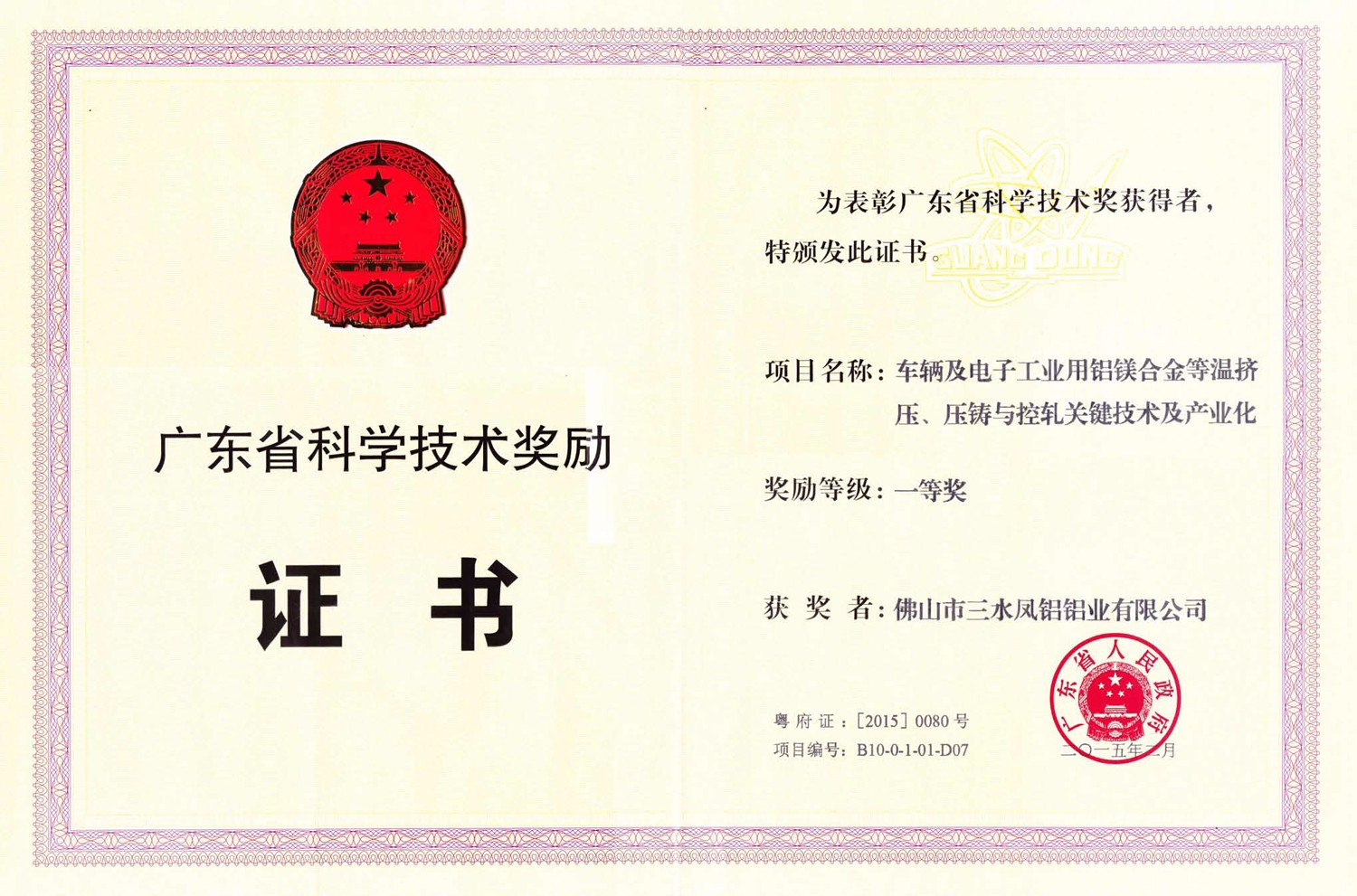 广东省科学技术一等奖